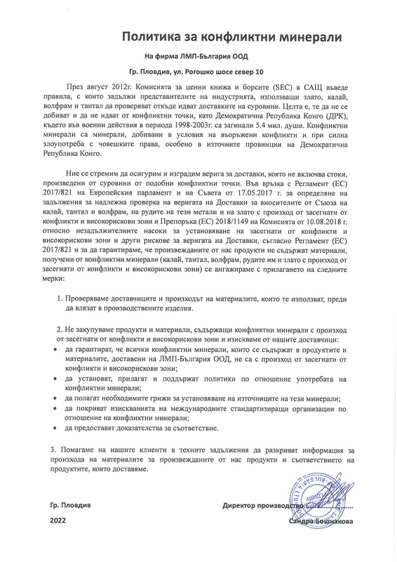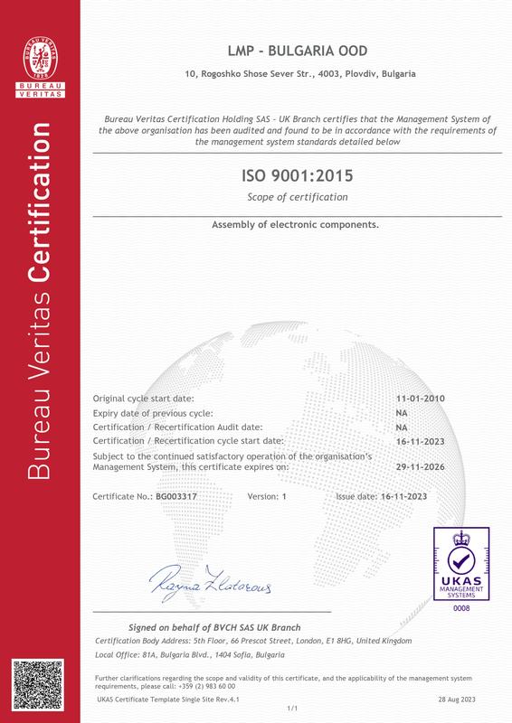 LMP Bulgaria has over 150 employees, including 10 certified and experienced engineers involved in product development, R&D, prototyping, serial production and quality control.  The organization of the work process is structured according to the needs of each separate client.